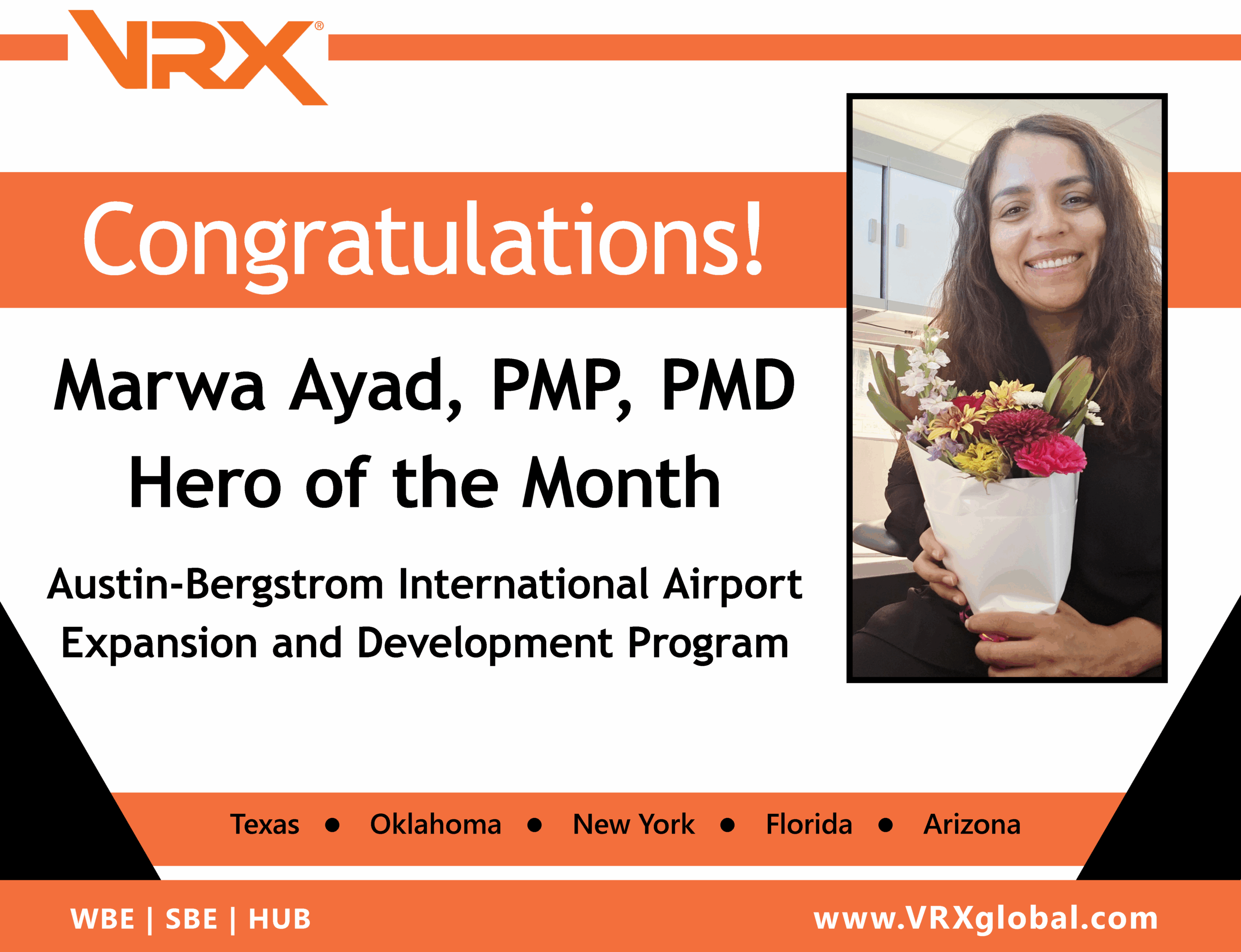 ratulates Marwa Ayad, PMP, PMD, on being named October’s Hero of the Month for her outstanding impact on the Austin-Bergstrom International Airport Expansion and Development Program (AUS AEDP). This bold, multi-year, multi-billion-dollar modernization and expansion effort is transforming aviation infrastructure in Austin, Texas.