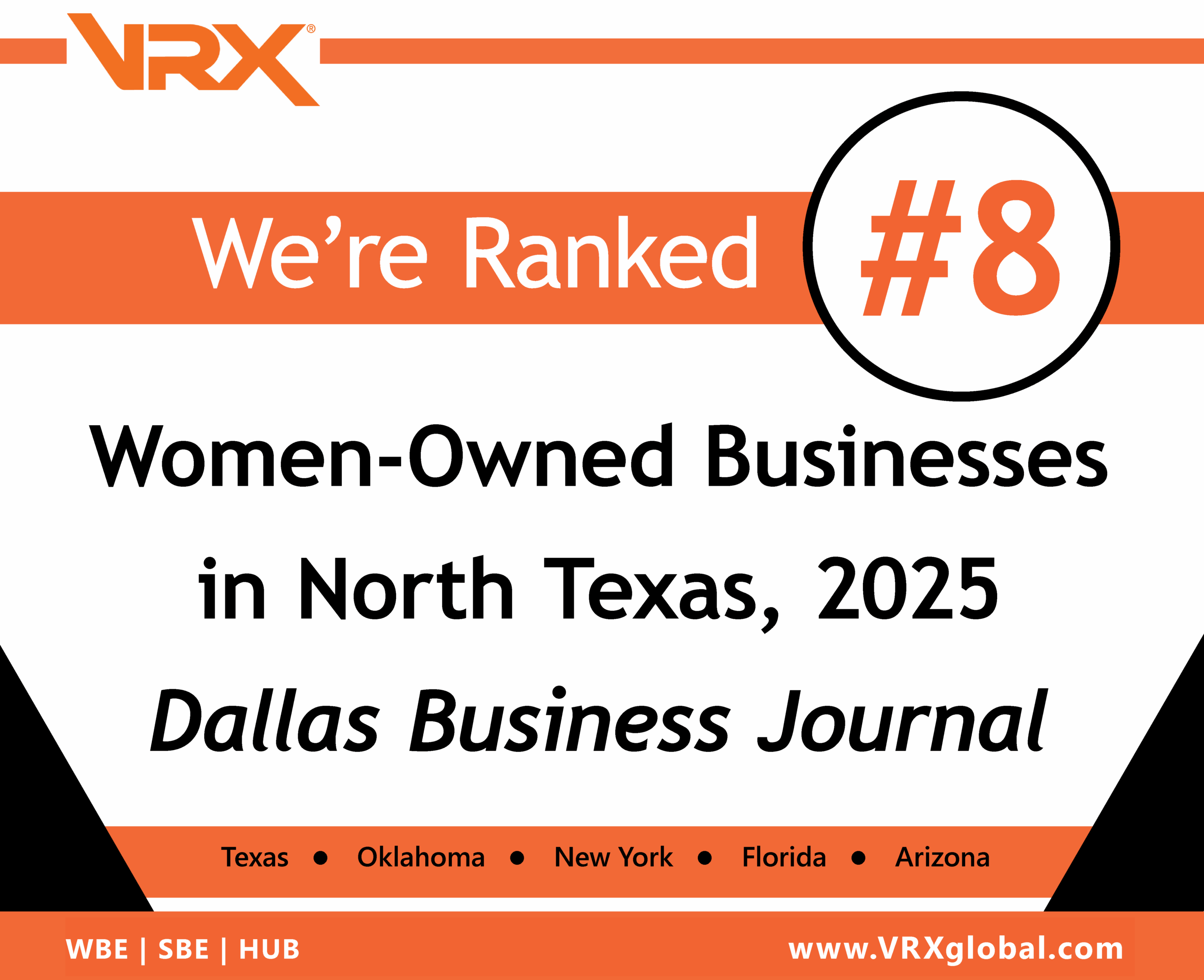 VRX is pleased to announce that we’re ranked among the top 10 Woman-Owned Businesses (WBEs) in North Texas by the Dallas Business Journal, based on companywide revenue of WBEs across 12 Texas Counties.